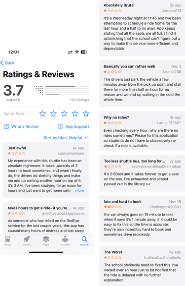 Understand why there is a low adoption rate among students, who stay outside the campus. To uncover the reliability and accuracy of transportation information provided by the application, including real-time updates on bus schedules and routes. Through this research process, I hope to understand user perspectives, preferences, and challenges with RedEye.